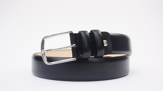 Satin leather belt, calf leather lining. 35mm